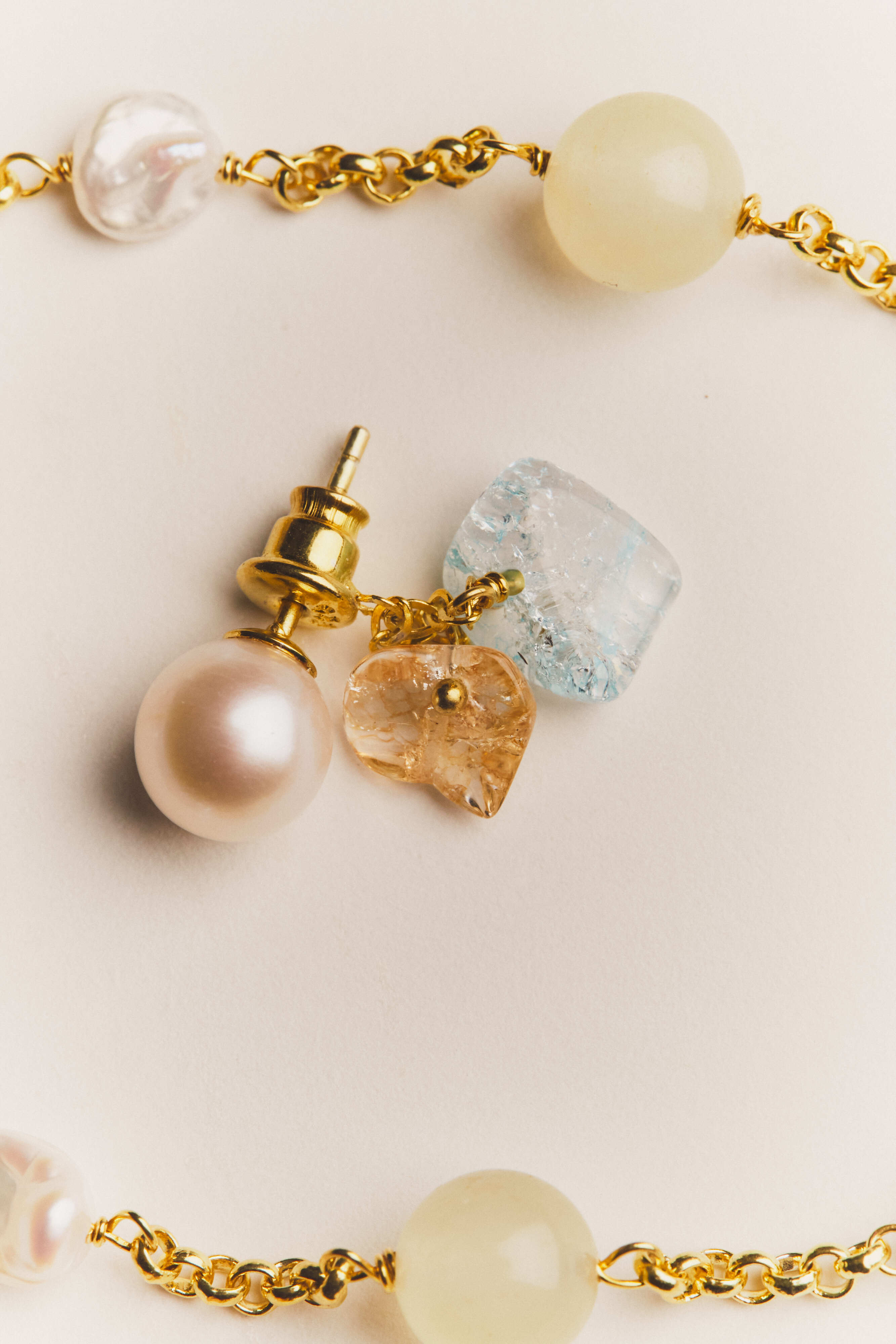 The rhythm created by the colorful quartz and pearls is somehow nostalgic yet new.